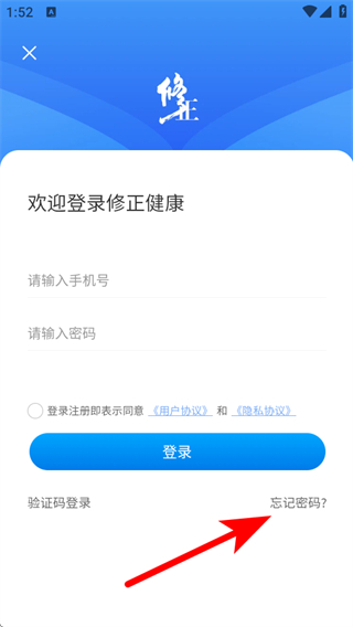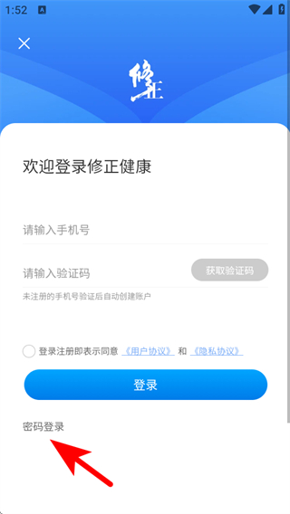 1、打開修正健康A(chǔ)PP,我們需要點擊下方的立即登錄按鈕。
