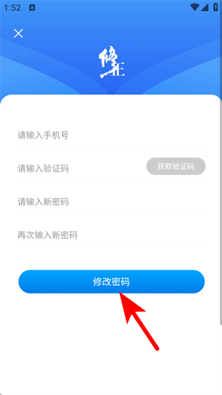 4、進入頁面輸入手機號等信息,點擊修改密碼,完成找回操作。