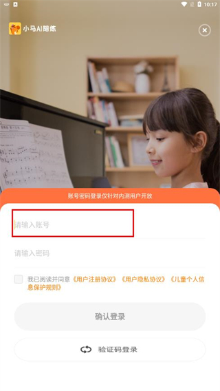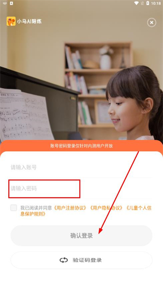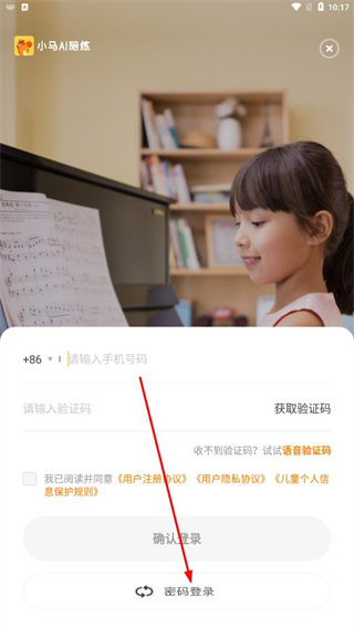 1、打開小馬ai陪練,在登錄頁面,找到并點(diǎn)擊密碼登錄。