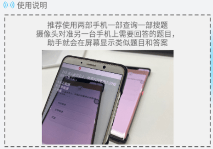 3.使用掃描識別,使用兩部手機一部查詢一部答題,攝像頭對準另一臺手機上要回答的題目.