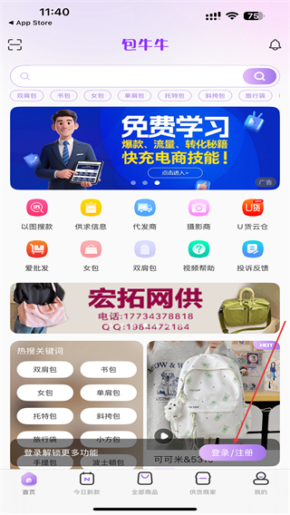 包牛牛是北京聚源百成網(wǎng)絡(luò)科技有限公司旗下的專業(yè)箱包產(chǎn)地貨源網(wǎng)站,依托于河北白溝以及廣州獅嶺產(chǎn)地優(yōu)勢為廣大網(wǎng)銷賣家提供一站式的箱包類商家信息、貨源信息等。各類箱包款式實時更新,每天上新數(shù)百款箱包讓你隨時掌握行業(yè)動態(tài),賣家通過一鍵發(fā)布應(yīng)用即可將廠家的商品發(fā)布到淘寶、拼多多、阿里、蝦皮等第三方電商平臺,摒棄了傳統(tǒng)的上門選款、加好友進(jìn)空間等極為費時耗力的人力模式,為廣大賣家朋友探索出了:商家—平臺—賣家的形式,使用戶實現(xiàn)了“足不出戶便知市場最新動態(tài)”,讓你身處任何地方都能坐享產(chǎn)地的優(yōu)勢貨源。 找款、選款一站式搞定,極大提高了工作效率;另外平臺還為用戶提供一件代發(fā)、攝影設(shè)計、電商培訓(xùn)、流行資訊等服務(wù),解決了遠(yuǎn)離市場的賣家無法現(xiàn)場拿貨、傳統(tǒng)廠商必須實地找款、選款等行業(yè)難題,在行業(yè)內(nèi)受到廣大用戶一致好評!