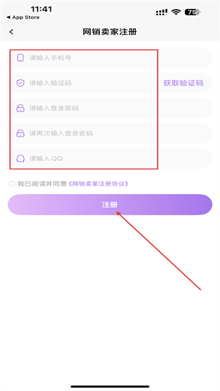 4、輸入相關(guān)信息內(nèi)容后,點擊下方注冊的按鈕即可完成。
