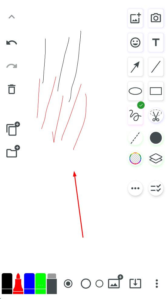 2、在APP的書寫界面,可看到底部有不同顏色的畫筆選項,點擊選擇自己想要使用的畫筆顏色。