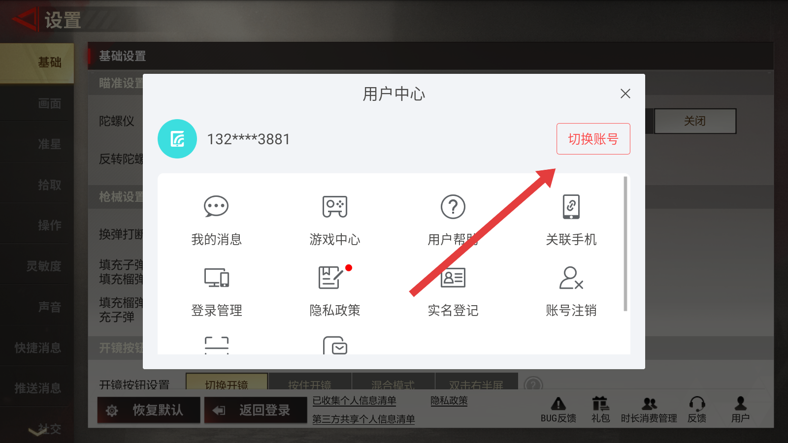 3、在用戶(hù)中心界面中,點(diǎn)擊切換賬號(hào)按鈕,然后按照系統(tǒng)提示,選擇登錄方式并輸入新賬號(hào)信息,即可完成換號(hào)登錄操作。