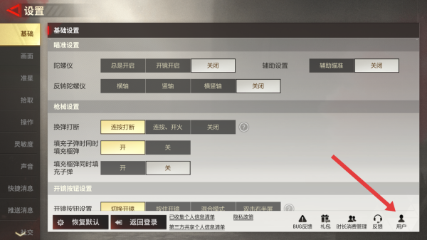 2、在設(shè)置頁(yè)面的底部,找到并點(diǎn)擊用戶(hù)選項(xiàng),進(jìn)入用戶(hù)中心界面。
