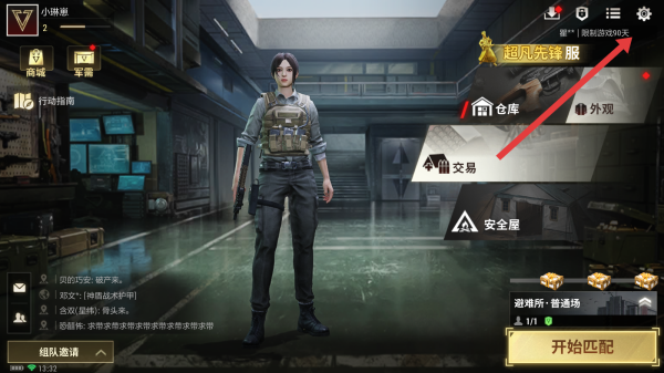 1、打開(kāi)超凡先鋒游戲,進(jìn)入游戲主界面后,點(diǎn)擊右上角的設(shè)置圖標(biāo),進(jìn)入設(shè)置頁(yè)面。