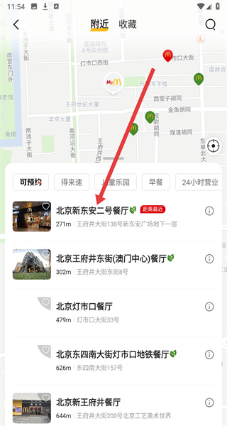 3、在附近餐廳列表中,選擇目標餐廳,比如北京新東安二號餐廳,進入該餐廳對應(yīng)的服務(wù)頁面。