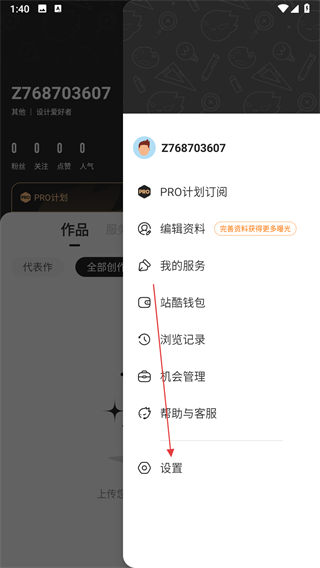 2、彈出側(cè)邊欄菜單后,點擊設(shè)置選項。