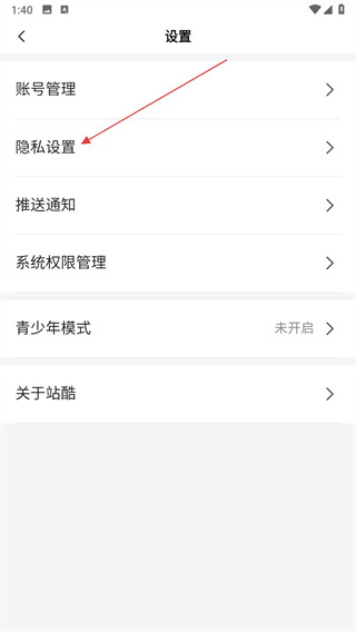 3、進入設(shè)置界面,點擊隱私設(shè)置選項,進入隱私設(shè)置頁面。