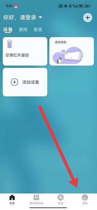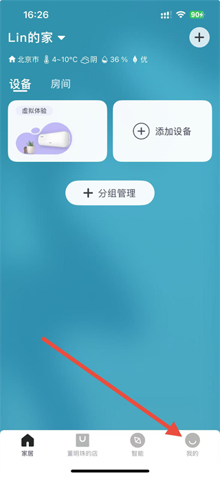 2、進(jìn)入設(shè)備界面后,點(diǎn)擊底部導(dǎo)航欄右下角的我的,切換至個(gè)人中心頁(yè)面,查看賬號(hào)相關(guān)功能。