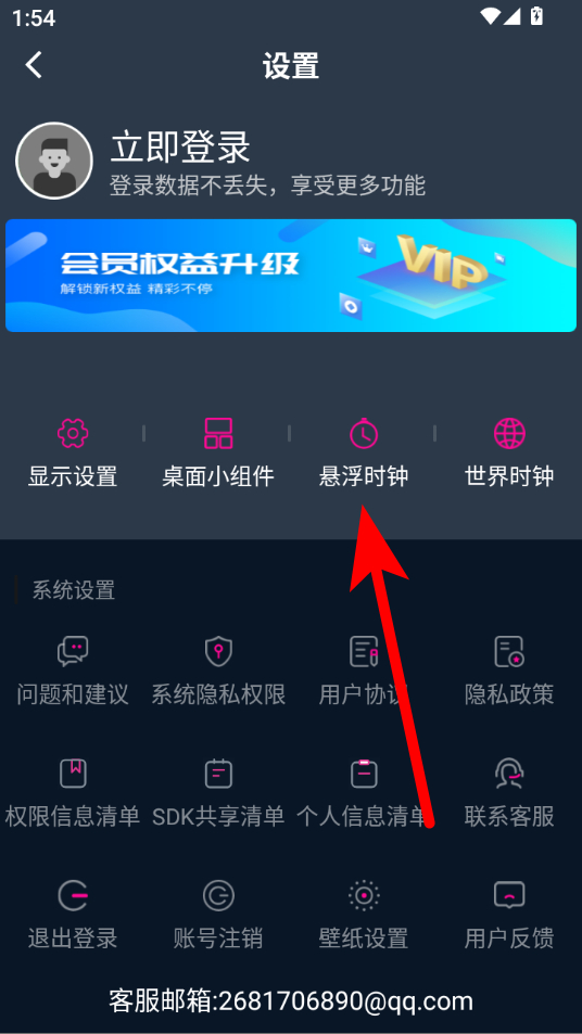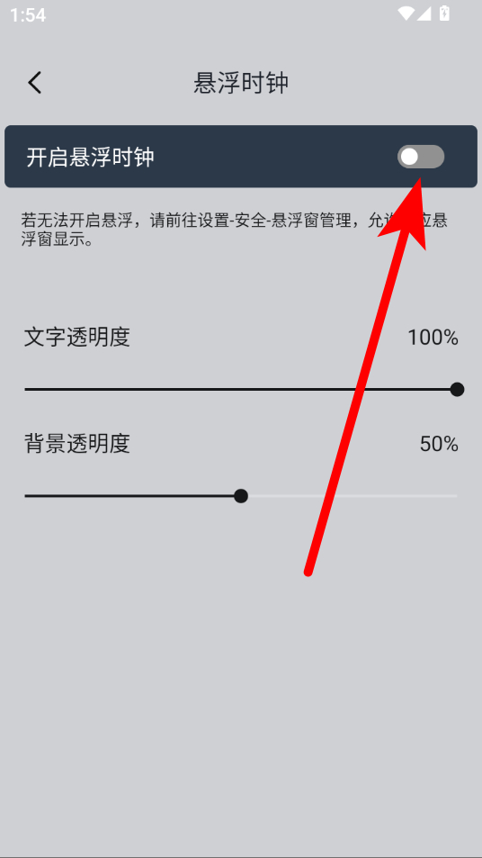 4、在懸浮時(shí)鐘設(shè)置界面,點(diǎn)擊開啟懸浮時(shí)鐘的開關(guān)按鈕即可。