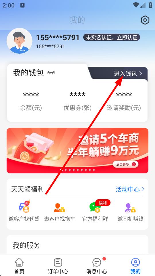 2、在個人中心頁面找到我的錢包板塊,點擊進入錢包。