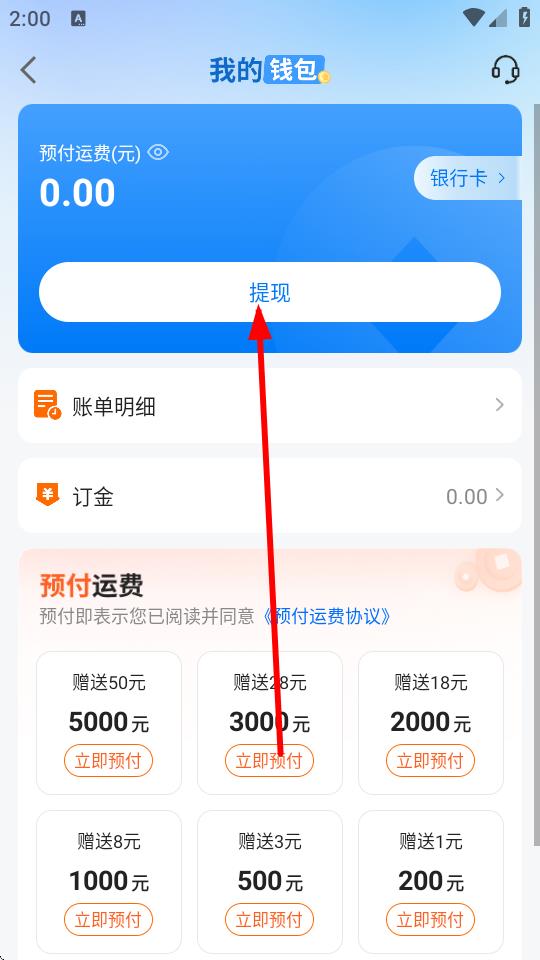 3、在我的錢包頁面中,點擊提現(xiàn)按鈕。