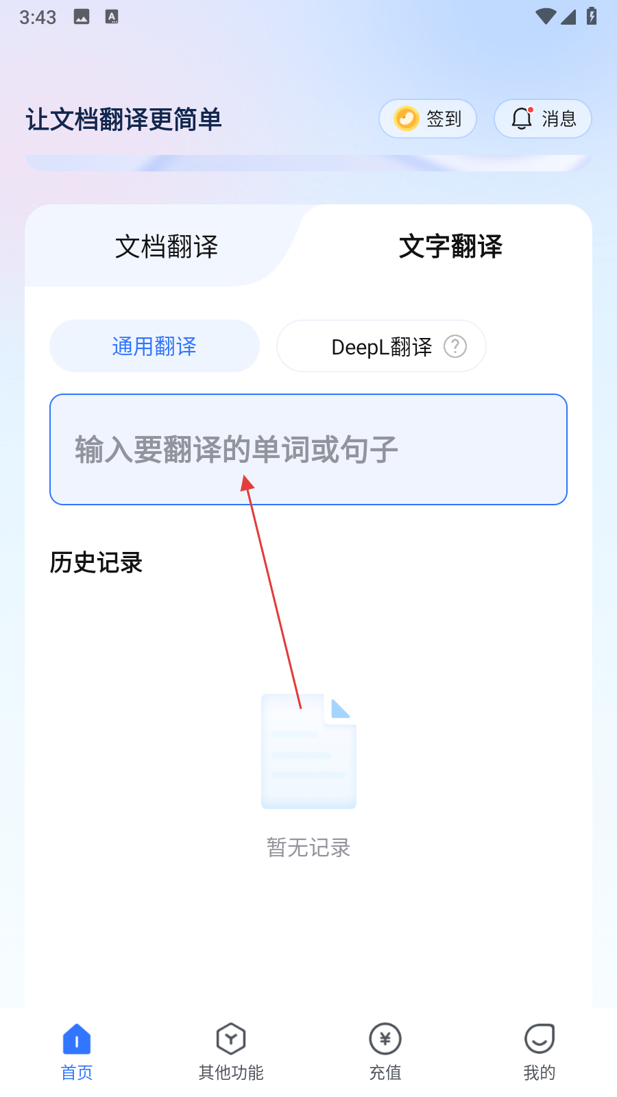 1、打開翻譯類應用,進入文字翻譯界面,點擊輸入框準備輸入內容。