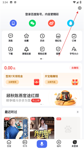 1、打開百度應(yīng)用,點(diǎn)擊右上角的設(shè)置圖標(biāo)。