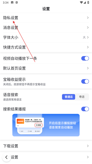 2、在設(shè)置頁(yè)面中,點(diǎn)擊隱私設(shè)置選項(xiàng)。