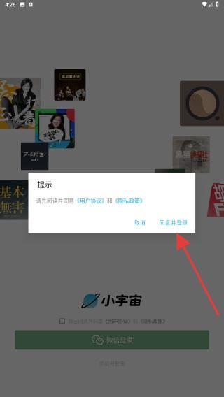 2、點(diǎn)擊后,會(huì)彈出用戶協(xié)議與隱私政策的提示,再點(diǎn)擊同意并登錄。