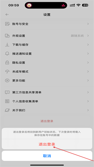 4、點(diǎn)擊后,界面彈出退出提示,再次點(diǎn)擊退出登錄即可。