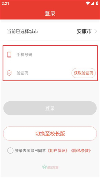 3、進入登錄頁面,在手機號碼輸入框填寫對應號碼,點擊獲取驗證碼并填入。