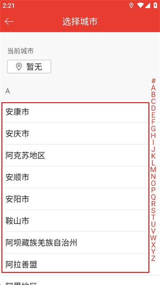 2、在選擇城市界面,從城市列表中找到并點擊安康市,完成地區(qū)的選擇操作。