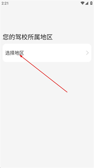 1、打開該軟件進入您的駕校所屬地區(qū)頁面,點擊選擇地區(qū)選項,跳轉至選擇城市界面。