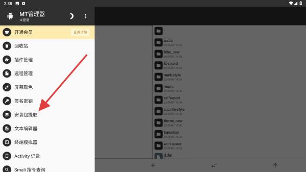 2、在左側(cè)彈出的菜單欄中,點(diǎn)擊安裝包提取的功能按鈕。