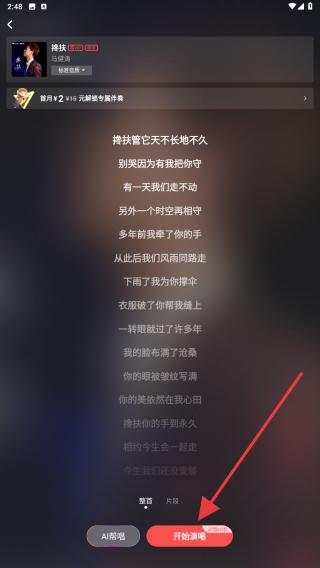 3、進(jìn)入歌曲演唱頁(yè)后,用戶需點(diǎn)擊開始演唱。