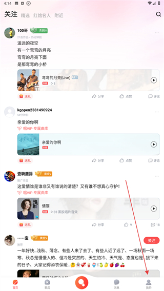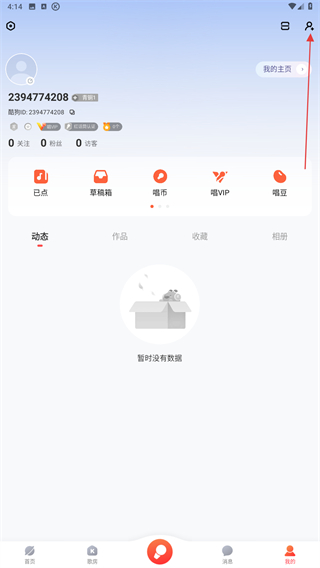 1、打開酷狗唱唱的APP,在首頁(yè)右下角點(diǎn)擊我的圖標(biāo)。