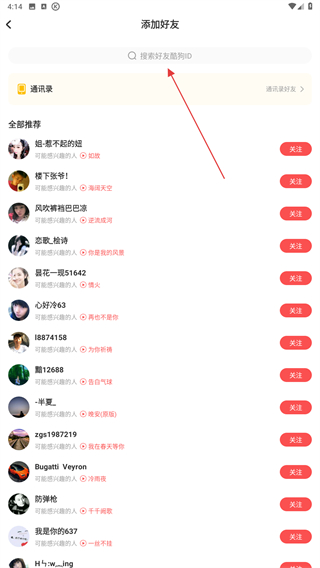 4、在輸入框內(nèi)輸入用戶名稱后,再點(diǎn)擊搜索按鈕即可。