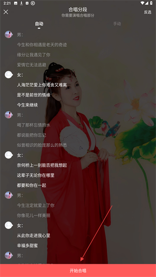 4、進(jìn)入k歌的頁(yè)面內(nèi),點(diǎn)擊下方開始合唱即可。