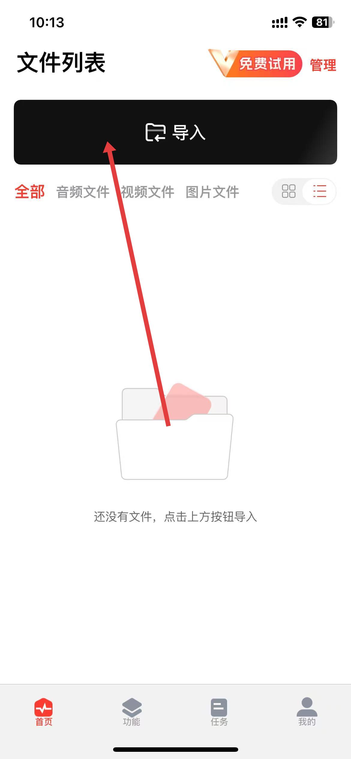 1、打開(kāi)音頻音樂(lè)剪輯應(yīng)用,點(diǎn)擊上方的導(dǎo)入按鈕。