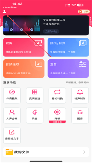 1、啟動(dòng)音頻音樂(lè)剪輯的APP,進(jìn)入首頁(yè)點(diǎn)擊左上人像的圖標(biāo)。