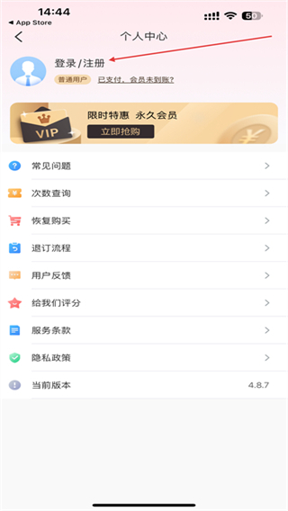 2、進(jìn)入個(gè)人中心的界面內(nèi),點(diǎn)擊登錄/注冊(cè)的區(qū)域位置。