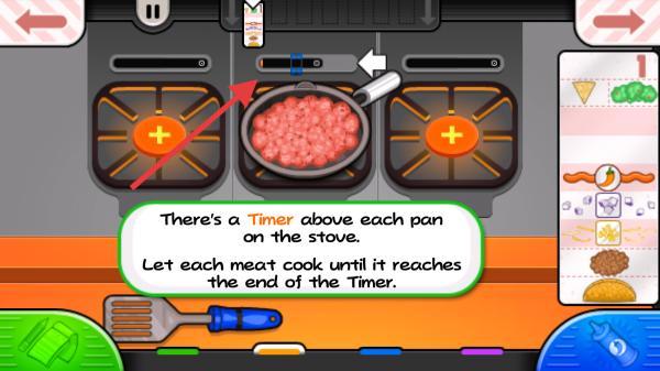 2、點擊爐灶,玩家將雞肉放入國內(nèi)進(jìn)行烹飪,模擬游戲計時機(jī)制,讓雞肉達(dá)成外酥里嫩的口感狀態(tài)。