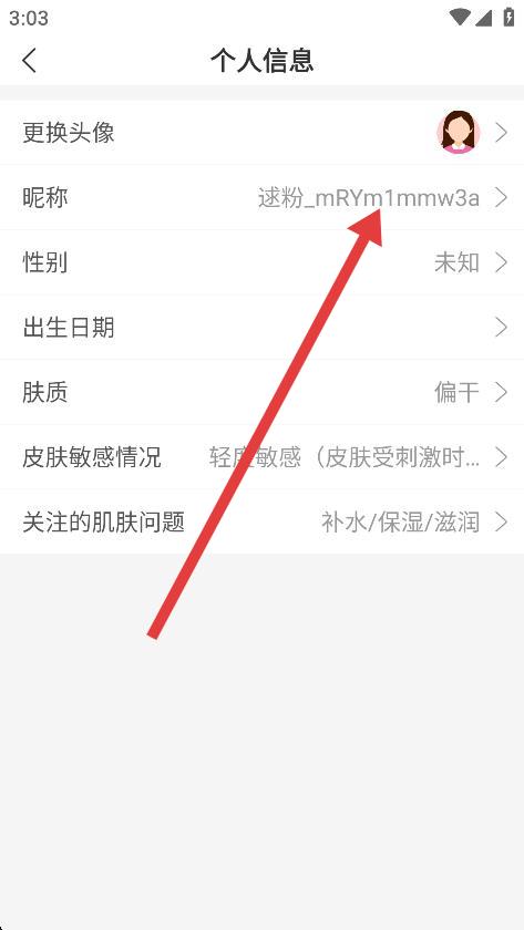 3、在個人信息頁面里,找到并點擊昵稱選項。