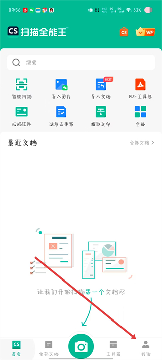 1、打開掃描全能王應用,進入首頁后點擊底部我的選項。