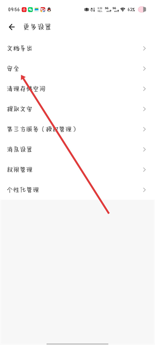 3、進入更多設(shè)置頁面之后,點擊安全選項,進入安全頁面。