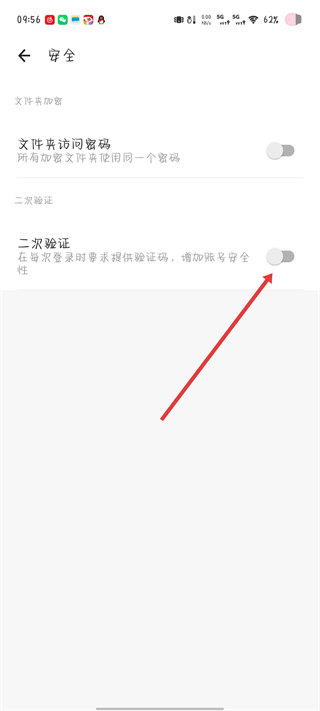 4、進入安全頁面后,找到二次驗證功能的開關(guān),切換為開啟。