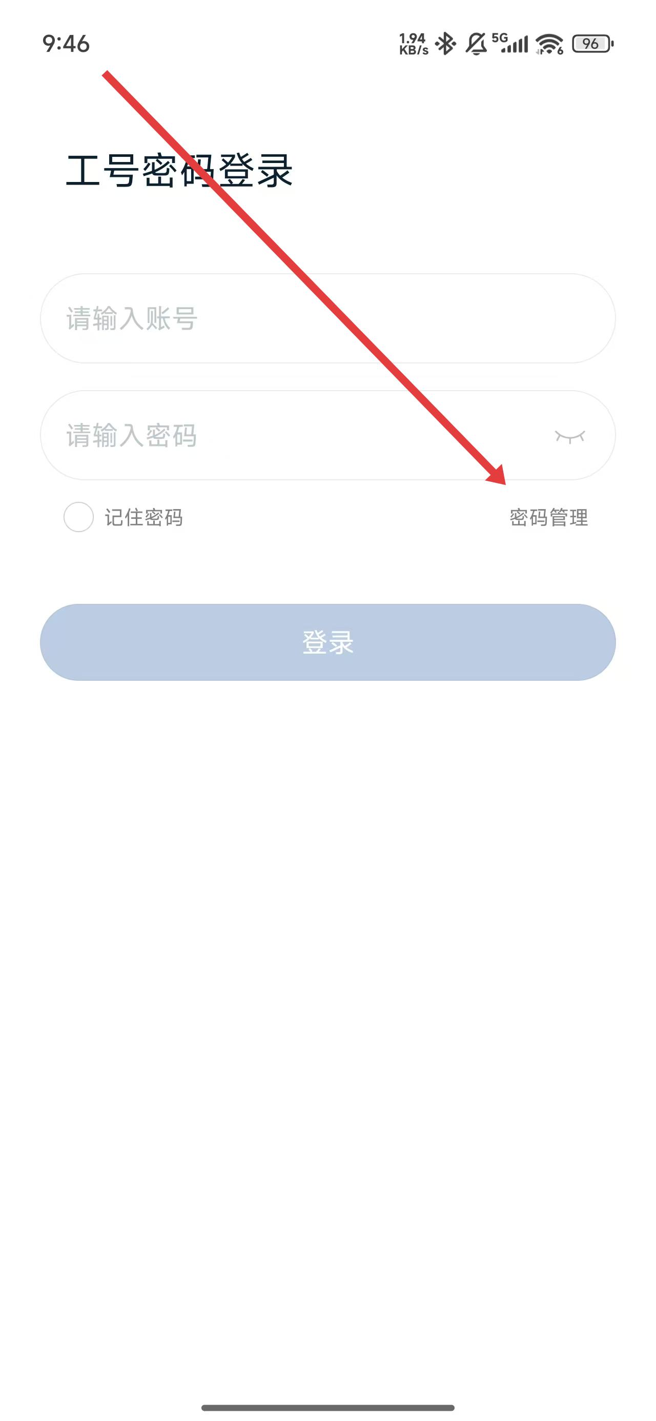 3、若在登錄時(shí),忘記了密碼可以點(diǎn)擊下方密碼管理按鈕解決。