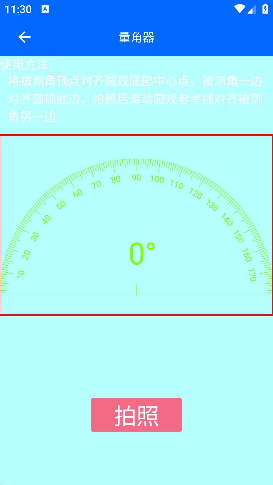 4、點擊拍照,可進行角度測量操作,完成量角器功能使用。
