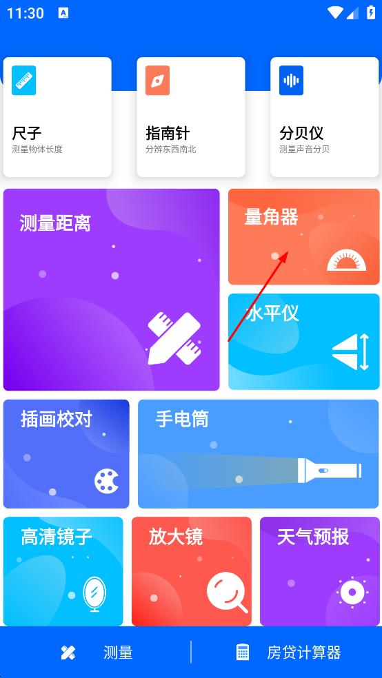 2、返回首頁,點擊量角器,進入量角器頁面。