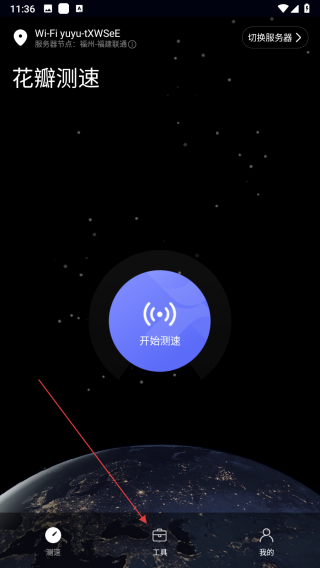 1、打開花瓣測速APP,進(jìn)入首頁,點(diǎn)擊底部工具選項。