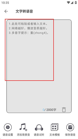 4、登錄后進(jìn)入文字轉(zhuǎn)語(yǔ)音界面,在文本框內(nèi)粘貼或輸入文本,即可進(jìn)行語(yǔ)音轉(zhuǎn)換操作。