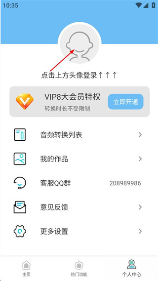 2、在個(gè)人中心界面,點(diǎn)擊上方頭像,進(jìn)入登錄界面。