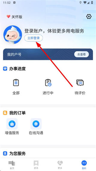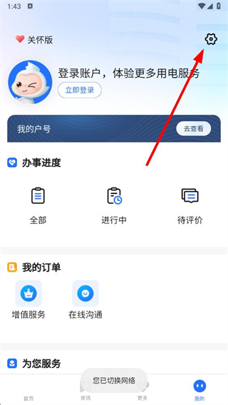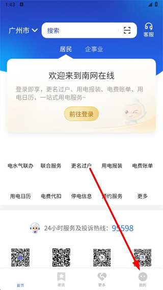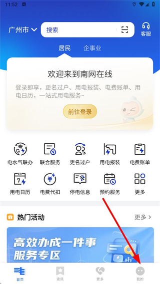 1、打開南網(wǎng)在線APP后,在底部導航欄點擊我的進入個人界面。