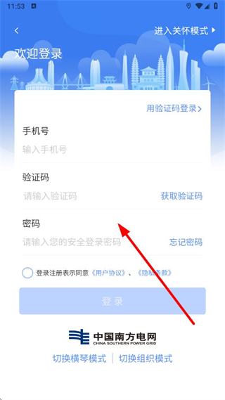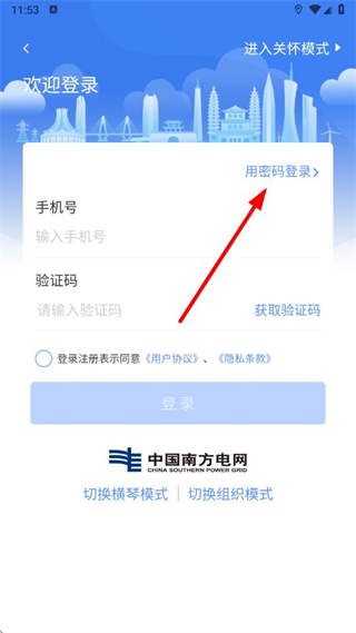 4、在頁面輸入手機號、驗證碼和密碼,同意相關協(xié)議后點擊登錄按鈕,即可完成密碼登錄操作。