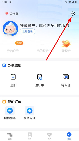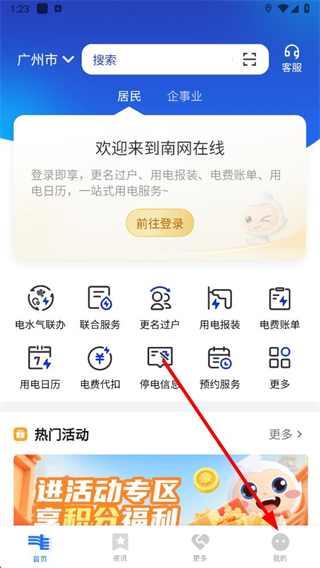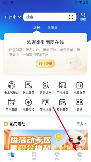 1、打開南網(wǎng)在線APP,點擊右下角我的進入個人頁面。