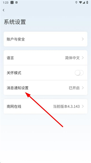 3、進入系統(tǒng)設置頁面后,點擊消息通知設置選項。