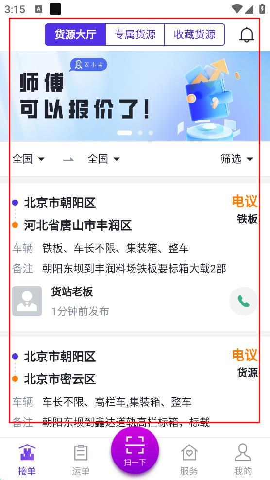 2、貨車司機(jī)自由接單,在全部貨源訂單之中可以自選接單時(shí)間、貨物訂單類型;