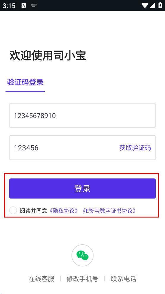 3、輸入收到的驗(yàn)證碼,勾選閱讀并同意隱私協(xié)議,E簽寶數(shù)字證書協(xié)議。